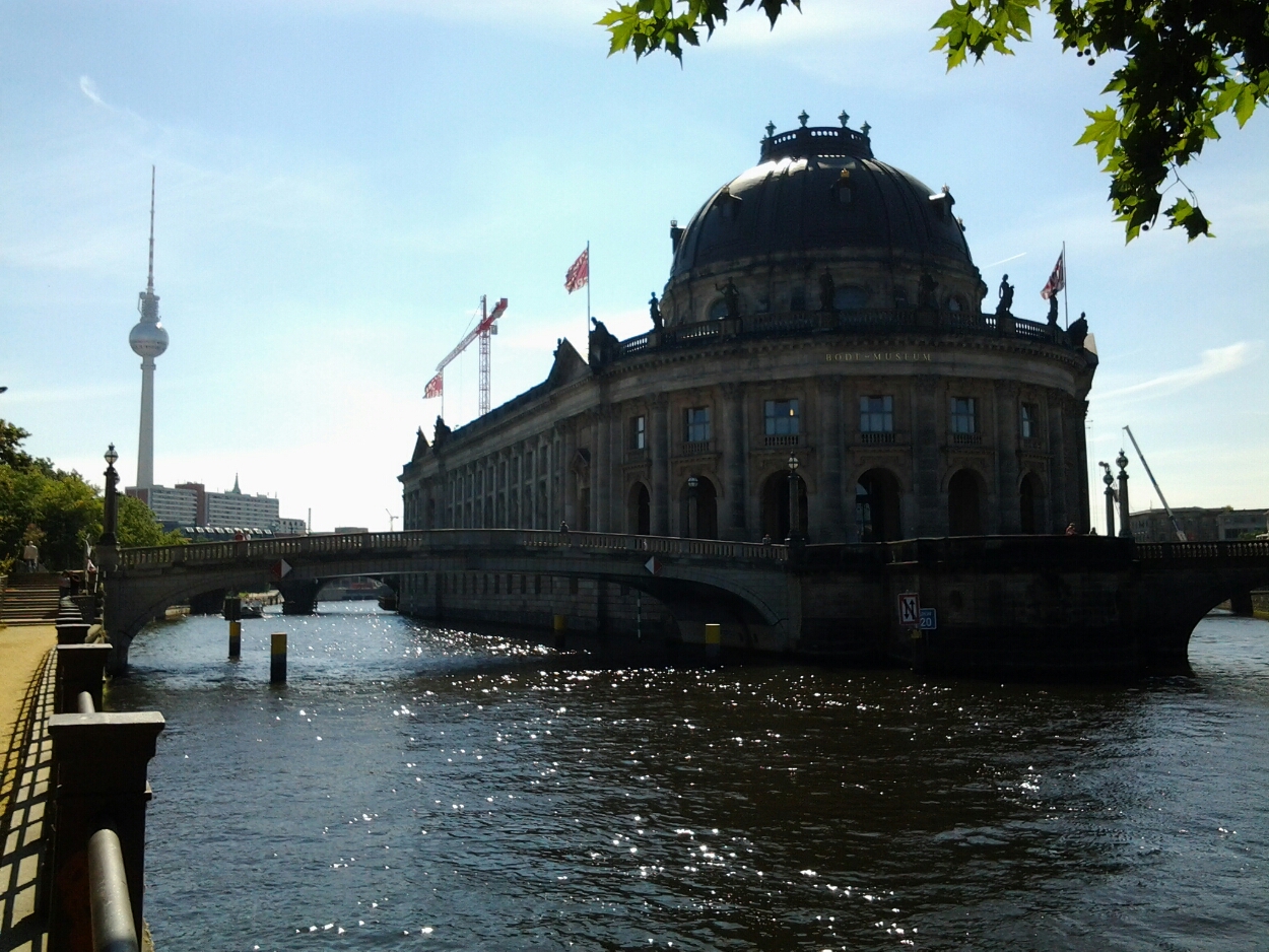 Recht tegenover ligt het Mont Bijou park aan de Spree met daarin een openbaar openluchtkinderzwembad (wow, ik begin al op z’n Duits superlange woorden te maken!) Zeer vol maar zeer leuk als het zoals nu overdag zo’n 31°c graden in de schaduw is. Ook Strandbar Mitte ligt om de hoek. Hier kan je tussen de palmbomen in een ligstoel een pintje kan drinken of ’s avonds kan gaan dansen of nog gaan kijken naar theaterstukken of concerten in een soort van provisoir opgestelde houten burcht. Het is hetzelfde theatergezelschap dat ook in de winter actief is in 2 boshutten waarover ik hier een stukje heb geschreven.